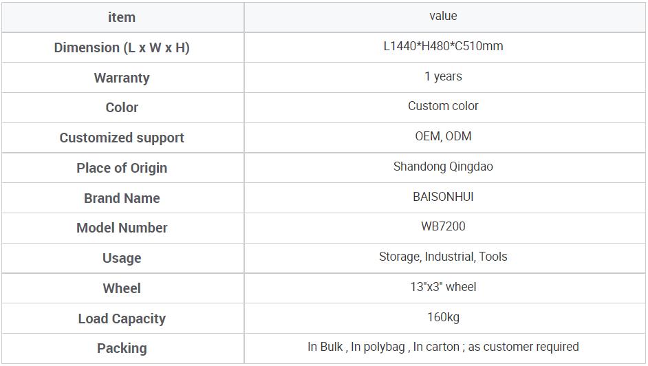 Load Capacity(kg):160 Weight(kg): 10.3 Water Capacity:78 Sand Capacity:5 Wheel:13"x3"A L/H/C:1440x480x510 A/B/h:895x620x270